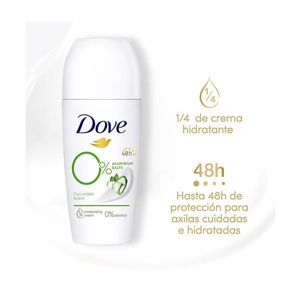 Desodorante Roll on Pepino e Chá Verde 0% Alumínio da Dove é um spray desodorante sem alumínio no qual você pode confiar para manter o odor afastado durante todo o dia.