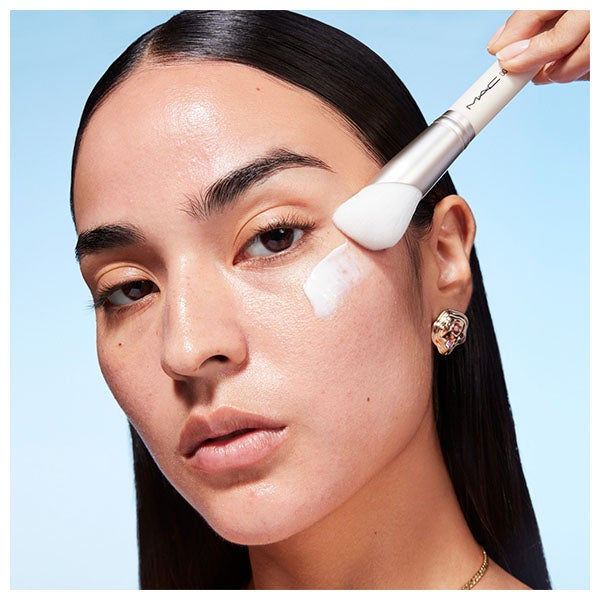 Melhore a aplicação do cuidado da sua pele com nosso primeiro pincel para cuidado da pele, projetado para aprimorar os rituais faciais da sua rotina diária. Desenvolvido em colaboração com os artistas da M-A-C, nosso pincel 001 Serum + Moisturizer Brush é especialmente projetado para aplicar o tratamento Hyper Real Skincare. O pincel inclinado em forma de cúpula possui cerdas macias, sedosas e densamente compactadas, feitas para abraçar a pele e proporcionar uma aplicação e absorção precisas. O pincel massageia suavemente as fórmulas de sérum, creme e bálsamo na pele sem puxar ou esticar, para obter uma tela perfeitamente preparada e pronta para a maquiagem. Também proporciona uma suave microesfoliação para um brilho naturalmente fresco e rosado.