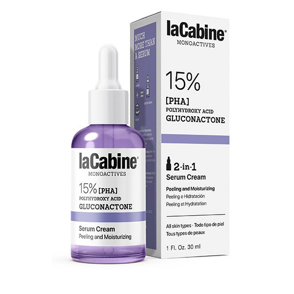 Sérum Creme 2 em 1 com PHA (Ácido Polihidroxilado) a 15%, esfolia e renova suavemente a pele para melhorar sua textura e a aparência dos poros, ao mesmo tempo que hidrata e proporciona conforto ao seu rosto.