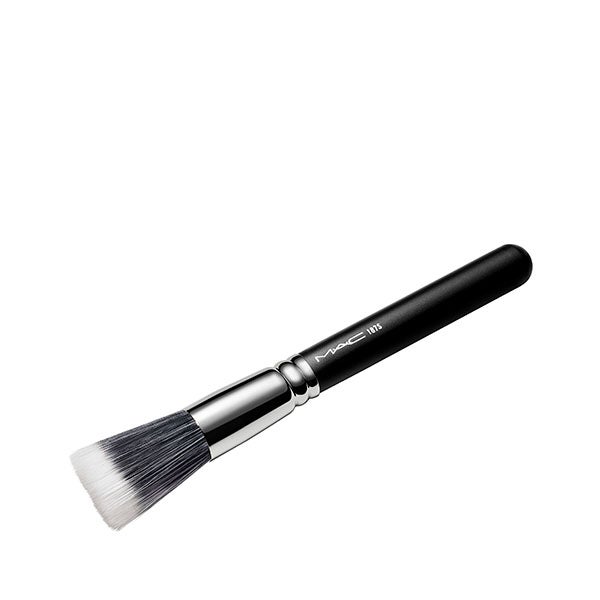 O pincel 187S da M·A·C é um pincel amplo e circular que permite aplicar pós faciais, líquidos e cremes esfumando-os suavemente com pequenos toques.