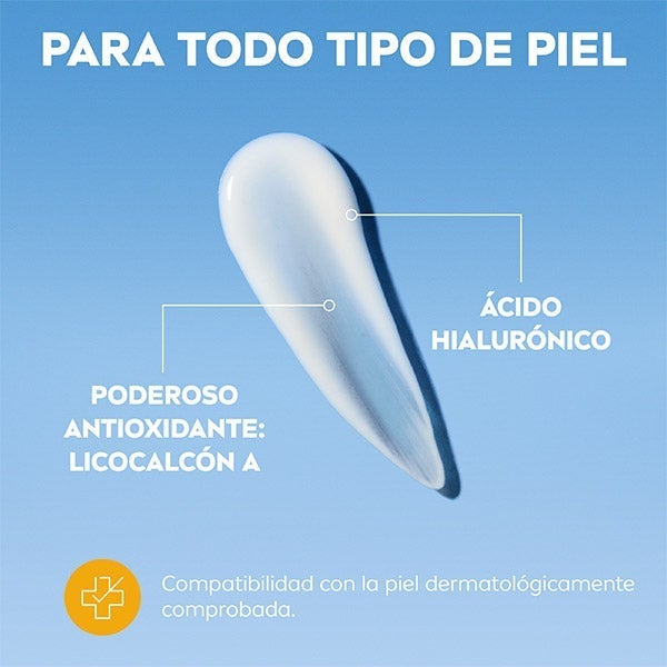 NIVEA SUN Proteção facial 2em1 Primer Serum UV Diário SPF 50+ foi especialmente desenvolvido para proteger e suavizar a pele do rosto em segundos. Alta proteção imediata contra os danos dos raios UV a curto e longo prazo, como o envelhecimento prematuro da pele. Este inovador serum leve é enriquecido com dois tipos de Ácido Hialurônico e com Licochalcona A, um poderoso antioxidante que protege as células da pele do estresse oxidativo. Enquanto o Ácido Hialurônico de cadeia longa hidrata as camadas superiores da pele, o de cadeia curta penetra mais profundamente e estimula a produção natural de Ácido Hialurônico (in vitro). É um serum muito leve, não oleoso, não pegajoso e que não deixa resíduos brancos na pele. É absorvido imediatamente e é ideal para uso diário e como base de maquiagem. Adequado para layering. Acabamento invisível em todos os tons de pele