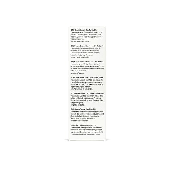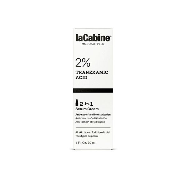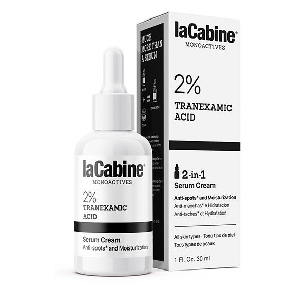 Sérum Creme 2 em 1 laCabine com 2% de ácido tranexâmico, ajuda a uniformizar o tom da pele e a reduzir as manchas escuras* enquanto hidrata. Em apenas um passo, a aparência da sua pele melhora.