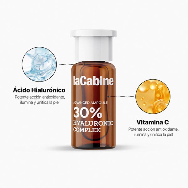 Ampola avançada com um complexo de 30% de Hialurônicos de diferentes pesos moleculares e Vitamina C para resultados elevados ao máximo. Ajuda a reduzir rugas e hidratar profundamente.
