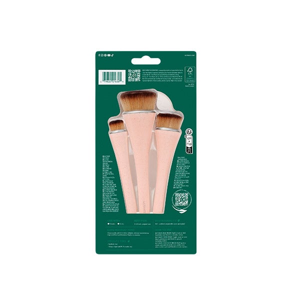 O conjunto de pincéis de maquiagem Ultimate Blend de 360° da EcoTools oferece 3 pincéis de maquiagem densamente embalados em 3 tamanhos diferentes para uma base definida e esculpida. O conjunto de pincéis inclui o pincel Ultimate Base, o pincel Ultimate Cheek e o pincel Ultimate Concealer. Esses pincéis para o rosto são melhores usados com bases líquidas, em creme e em bastão, blushes, bronzers e corretivos. Ajuda a destacar suas maçãs do rosto, contornar a linha do maxilar e aperfeiçoar sua base com esses pincéis de maquiagem de forma única. Desempenho superior feito de forma sustentável.
