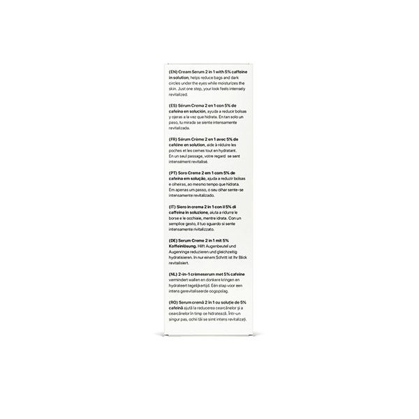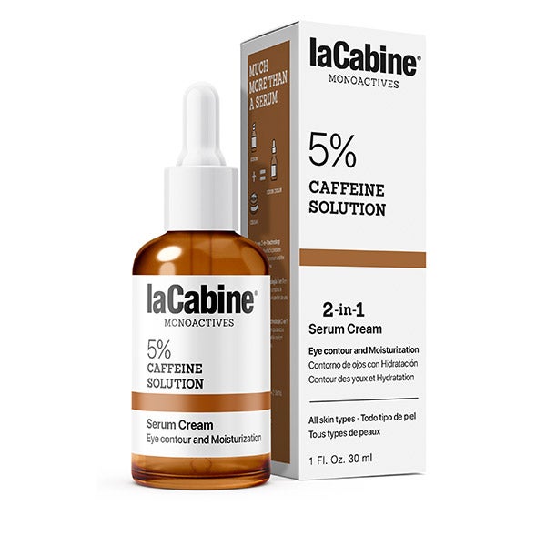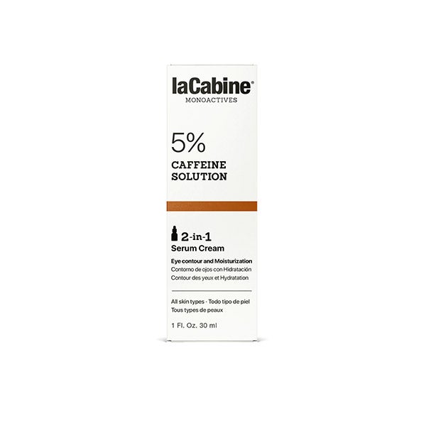 Sérum Creme 2 em 1 laCabine com 5% de cafeína em solução, ajuda a reduzir bolsas e olheiras enquanto hidrata. Em apenas um passo, seu olhar se sente intensamente revitalizado.