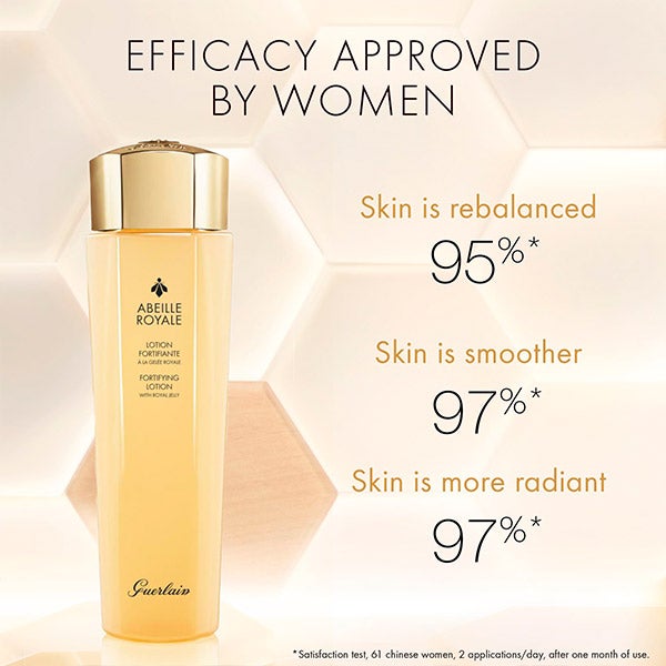 O poder da Geleia Real exclusiva de Guerlain está otimizado com tecnologia lipossomal. Estas esferas invisíveis encapsulam e concentram a geleia real na Loção Fortalecedora, e sua afinidade natural com a epiderme ajuda a que se espalhe mais facilmente sobre a pele.