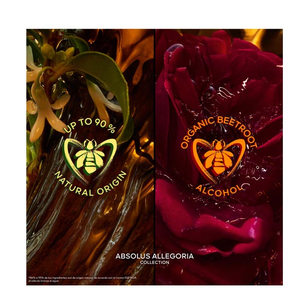 Os perfumes Absolus Allegoria, símbolo inegável do compromisso da Guerlain com o planeta, são compostos por até 90% de ingredientes de origem natural*. O álcool de beterraba francesa incluído em suas fórmulas provém de uma cadeia de suprimento comprometida com a agricultura responsável.