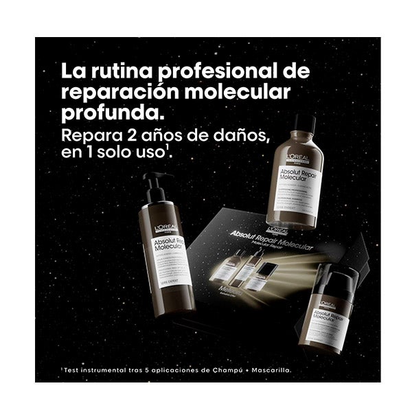 Absolut Repair Molecular de Série Expert é uma linha profissional de cuidados capilares para cabelo muito danificado. Reconstrói a estrutura macromolecular do cabelo, reparando 2 anos de danos e proporcionando 100 horas de brilho.