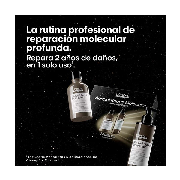 Absolut Repair Molecular de Série Expert é uma linha profissional de cuidados capilares para cabelos muito danificados. Reconstrói a estrutura macromolecular do cabelo, reparando 2 anos de danos e proporcionando 100 horas de brilho.
