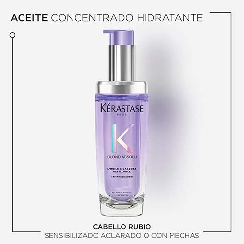 O óleo recarregável Cicagloss proporciona uma hidratação profunda, fortalece a fibra danificada e ajuda o cabelo a se recuperar dos danos causados pela descoloração ou clareamento para um efeito de brilho instantâneo. Enriquecido com Edelweiss, uma flor extremófila, que cresce até 3000 m de altitude nos Alpes Suíços e enfrenta ventos fortes, altas radiações UV e baixas temperaturas. Delicadamente extraído, o poder de recuperação dos ativos é preservado.