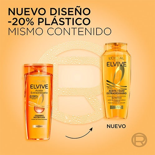 O Shampoo Óleo Extraordinário de Elvive transforma os cabelos secos, enchendo-os de vida, deixando-os sublimes e brilhantes. Sua textura leve enriquecida com seis óleos de flores preciosas* se funde no cabelo para uma nutrição extraordinária.