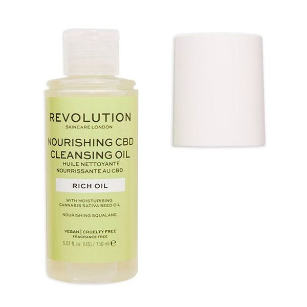 Óleo de limpeza formulado com óleo de semente de cannabis sativa e canabidiol (a parte não psicoativa da planta de cânhamo).
