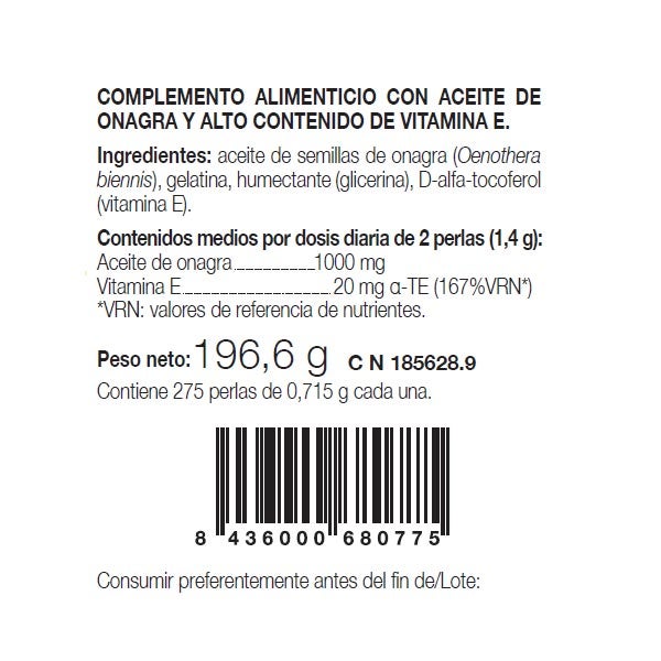 Ingredientes: aceite de semillas de onagra (Oenothera