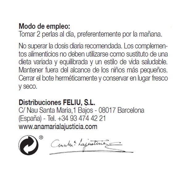Contenidos medios por dosis diaria de 2 perlas (1,4 g):