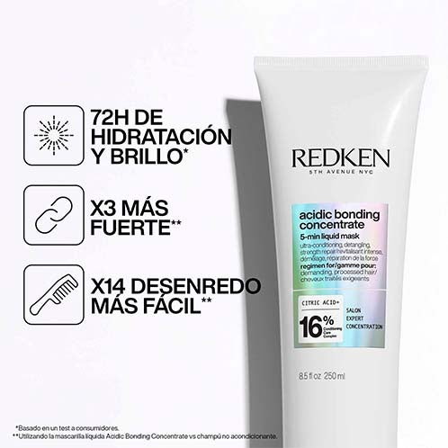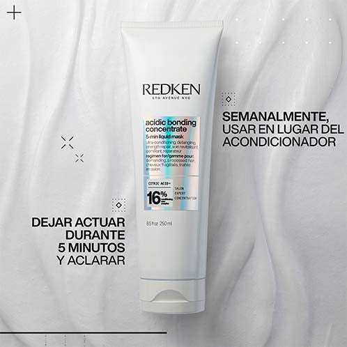 Máscara líquida profissional com tecnologia bonding que se funde rapidamente no cabelo para uma reparação e hidratação profunda em 5 minutos.