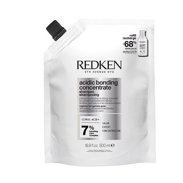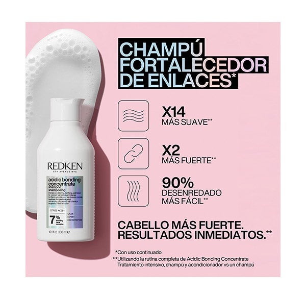 Redken Acidic Bonding Concentrate Shampoo repara todo tipo de cabelo danificado, reduz a quebra em 56% e fortalece o cabelo da raiz às pontas.
