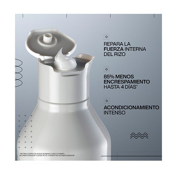 Condicionador Acidic Bonding Curls, o cuidado sem silicone que fixa, restaura e fortalece seus cachos desde o interior. Formulado com a tecnologia Curl-Bond, uma poderosa combinação de ácido cítrico, ureia e glicina, este condicionador reativa a fibra do cacho, proporcionando mais força, brilho e volume. Recupera ligações e repara a força interior dos cachos.