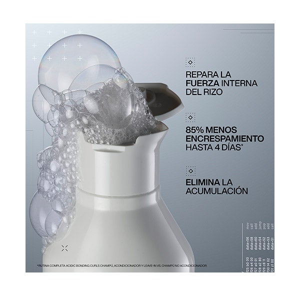 Champô Acidic Bonding Curls, o cuidado sem silicone que fixa, restaura e fortalece seus cachos desde o interior. Formulado com a tecnologia Curl-Bond, uma poderosa combinação de ácido cítrico, ureia e glicina, este champô reativa a fibra do cacho, proporcionando mais força, brilho e volume.