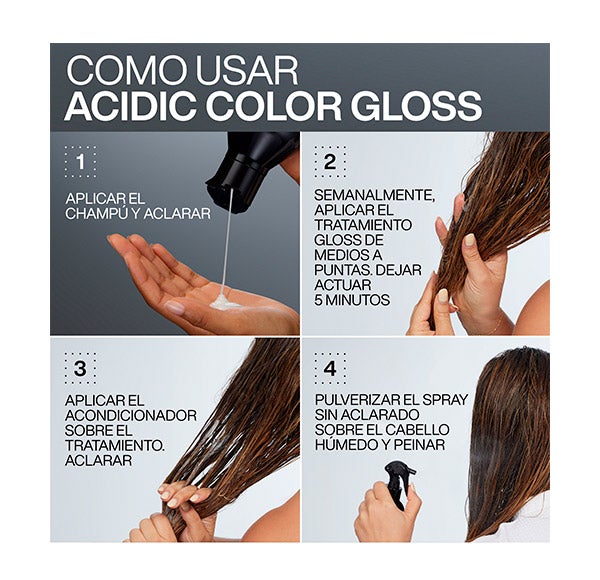 Utilizar como rotina completa com o shampoo Acidic Color Gloss.