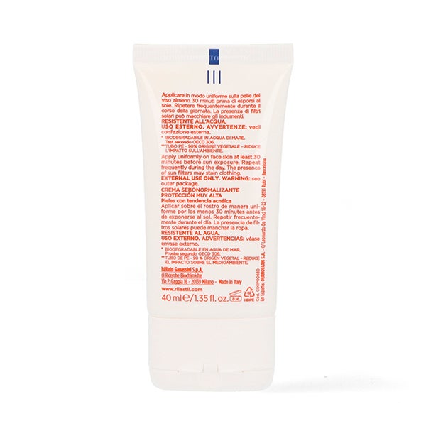 Fotoprotetor solar anti-imperfeições para peles com brilhos e tendência acneica. Tratamento para peles sensíveis com tendência acneica sujeitas a eritemas e fototipos claros. Emulsão leve enriquecida com ingredientes ativos de ação seborreguladora, matificante, calmante e elastificante.