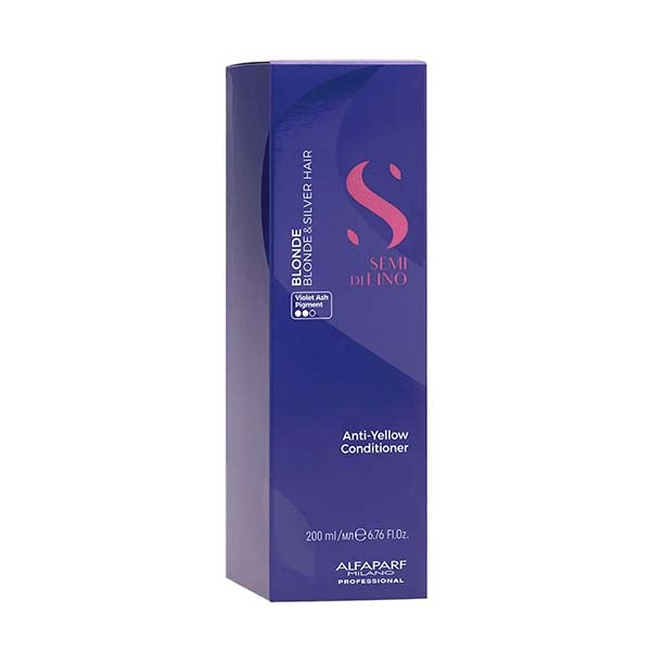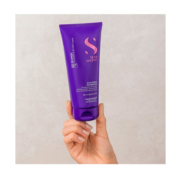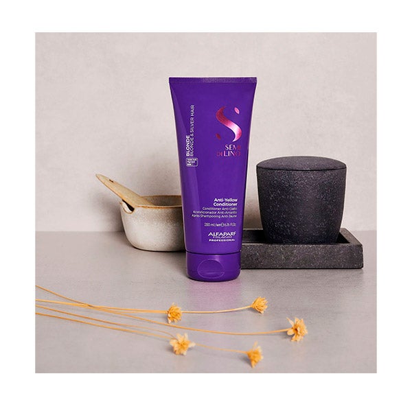 Cabelo loiro e silver. Anti-Yellow Conditioner desembaraça, neutraliza os reflexos amarelados indesejados e proporciona vitalidade e hidratação ao cabelo sem deixá-lo pesado.