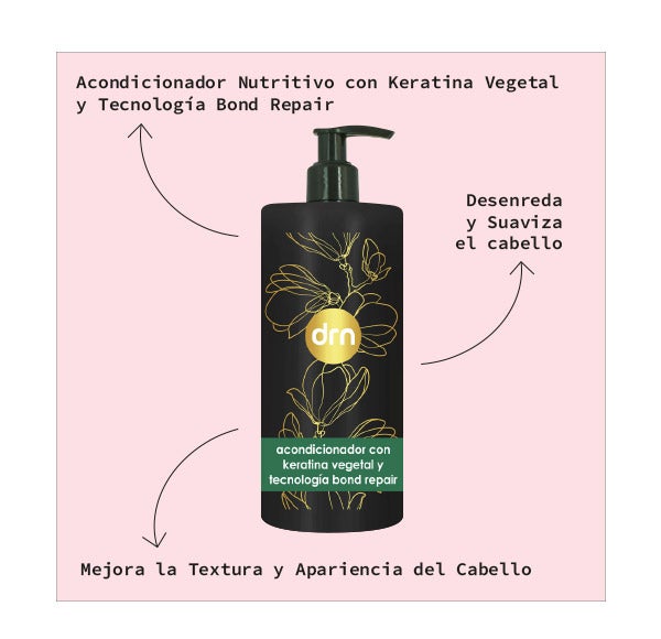 El Acondicionador Nutritivo con Queratina Vegetal y Tecnología Bond Repair desenreda y suaviza el cabello, facilitando el peinado y reduciendo el frizz. Su fórmula nutritiva ayuda a mantener el cabello fuerte y saludable, mejorando su textura y apariencia.