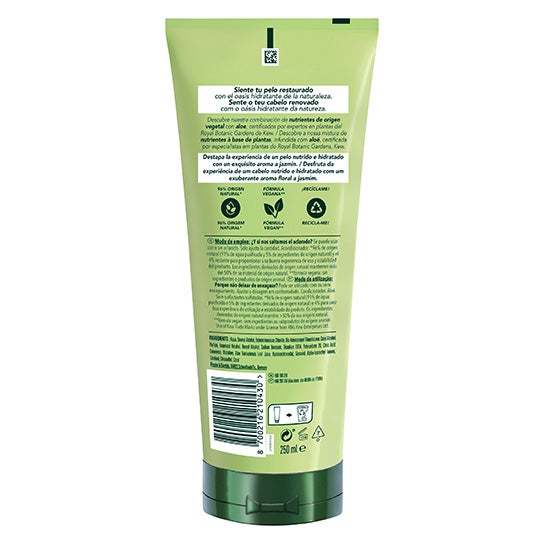 Herbal Essences Condicionador Fortificante com Aloe ajuda a revitalizar o cabelo seco e proporciona uma sensação de equilíbrio graças ao seu delicado aroma a jasmim. Ao misturar nutrientes de origem vegetal infusionados com aloe do México, obtemos uma fórmula vegana. Pode ser usado como condicionador com enxágue, ou simplesmente pode não enxaguar e desfrutar dessa incrível sensação por mais tempo e reduzir o consumo de água, ideal para todos os tipos de cabelo, incluindo cachos