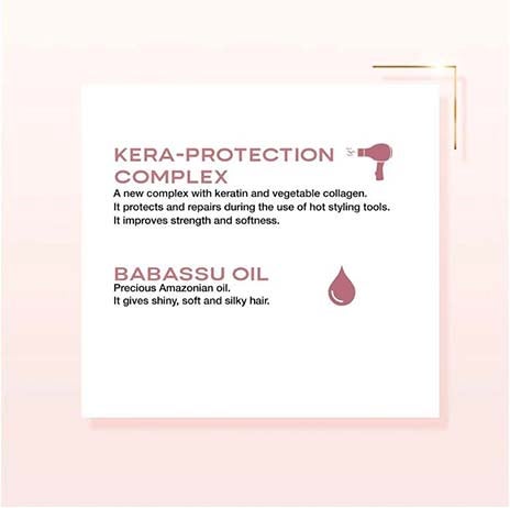 Com Kera-protection complex e Óleo de Babaçu para um cabelo protegido, liso e fácil de pentear.