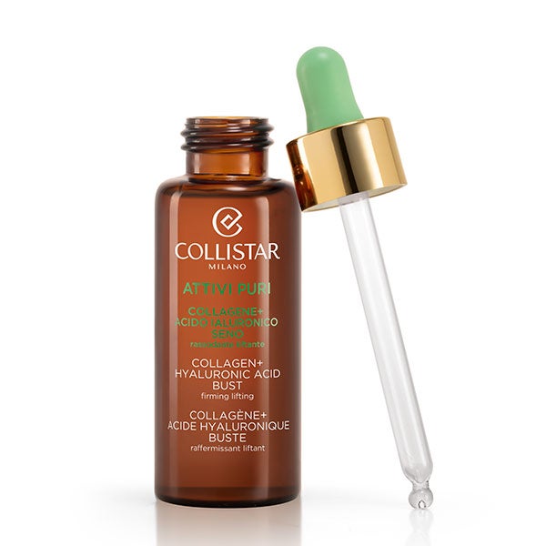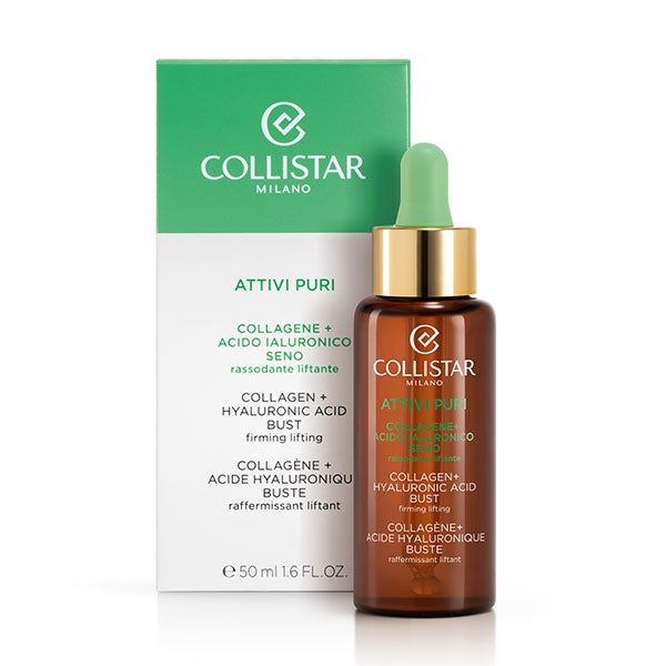 Collistar apresenta a nova fronteira da pesquisa dermocosmética para a beleza dos seios. Colágeno + ácido hialurônico: dois valiosos princípios ativos usados na medicina estética, apresentados em sua forma mais pura e com a concentração ótima para garantir máxima eficácia, uma ação específica e alta segurança. Bastam algumas gotas por dia para obter resultados rápidos, seguros e duradouros.