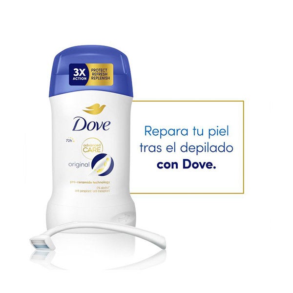 O Dove Advanced Care Desodorante Stick Original oferece até 72 horas de proteção antitranspirante enquanto cuida e protege a pele das suas axilas. Sua fórmula em creme, enriquecida com Pro-Ceramidas, ajuda a reparar a barreira cutânea, mesmo após a depilação, deixando-a mais suave e resistente.