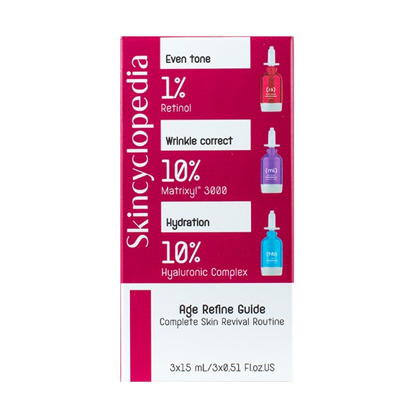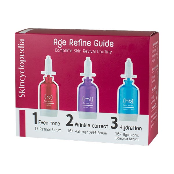 Um conjunto de 3 sérums para uma rotina completa de refinamento da idade.