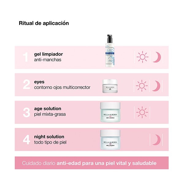 Aplicar pela manhã sobre o rosto, pescoço e colo, realizando uma leve massagem até sua completa absorção.