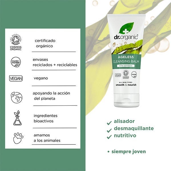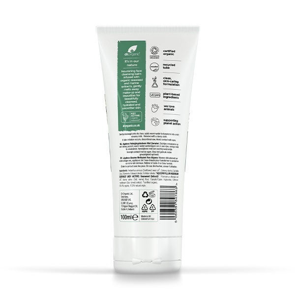 Luxuoso bálsamo de limpeza facial enriquecido com algas marinhas orgânicas e óleos vegetais.