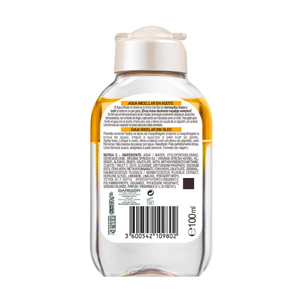 El Agua Micelar en Aceite de Garnier es un limpiador facial que nutre, desmaquilla y limpia ojos, labios y rostro en un solo gesto.