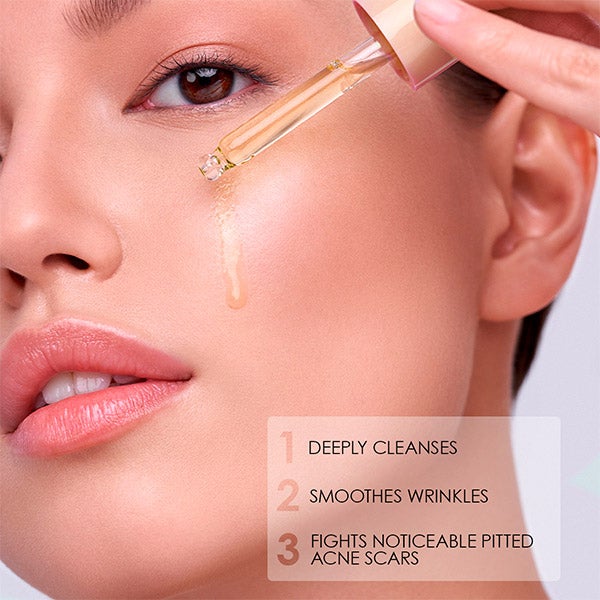 2. Aplique uma pequena quantidade do sérum sobre sua pele purificada e espere que seja completamente absorvido.