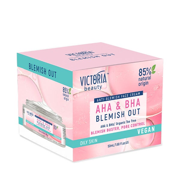 CREME FACIAL ANTI-Imperfeições AHA & BHA enriquecido com ácido glicólico, ácido salicílico, zinco, niacinamida (Vit. B3) e óleo de árvore de chá.