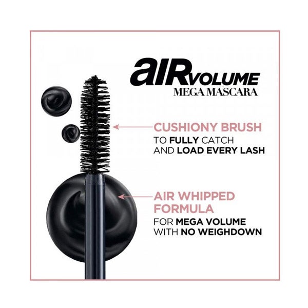 Mega Volume Air Mascara da L'Oréal Paris é a primeira máscara de cílios com ar em sua fórmula que dá mega volume enquanto deixa uma sensação leve como o ar em seus cílios.