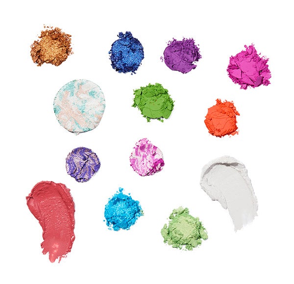 Desde o ousado fúcsia de «it's only a dream» até o intenso brilho jaspeado de «muchness», esta paleta é uma delícia para os olhos e o rosto.