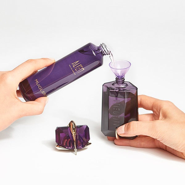 O perfume Alien, é um vaporizador recarregável que faz parte de um projeto de sustentabilidade único da marca. Desde 1992 e da criação de sua primeira fragrância, Mugler tem se comprometido com o luxo responsável criando fragrâncias recarregáveis através de suas fontes ou frascos de reabastecimento.