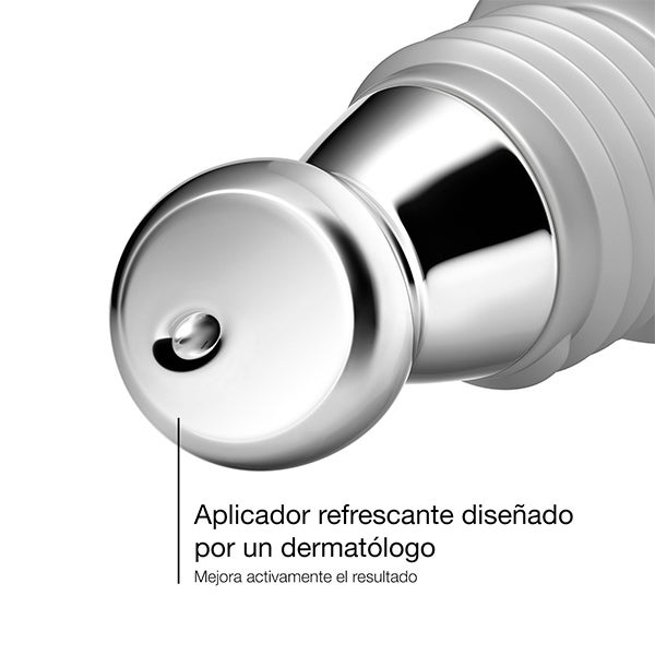 - El masaje con el aplicador en la zona del contorno de ojos ayuda a reducir visiblemente las bolsas.