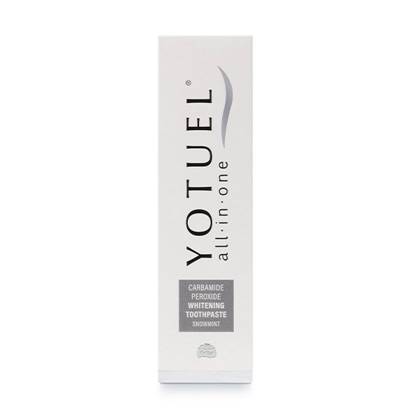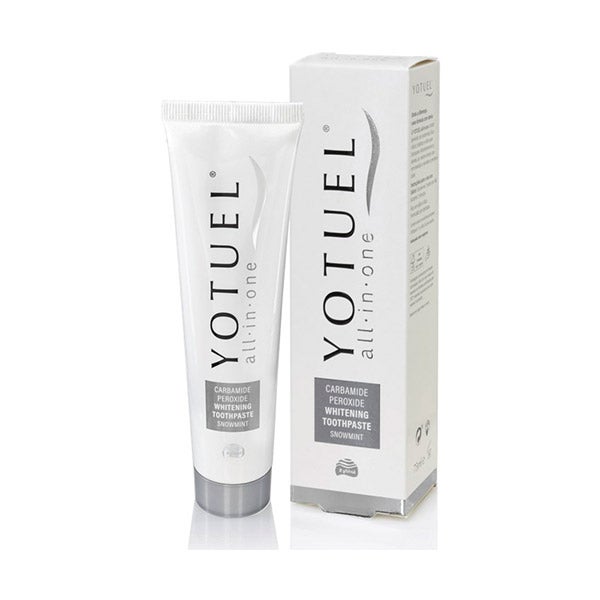 - Yotuel All In One é o primeiro creme dental capaz de eliminar manchas externas e internas do esmalte graças ao seu conteúdo em Peróxido de Carbamida de uso habitual em tratamentos profissionais.