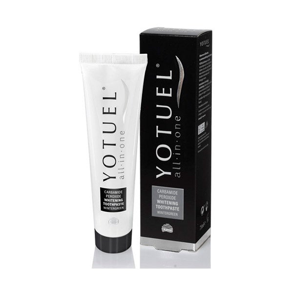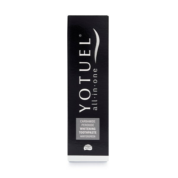 - Yotuel All In One é o primeiro dentífrico capaz de eliminar manchas externas e internas do esmalte graças ao seu conteúdo em Peróxido de Carbamida de uso habitual em tratamentos profissionais.