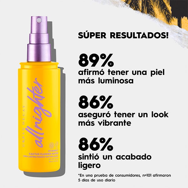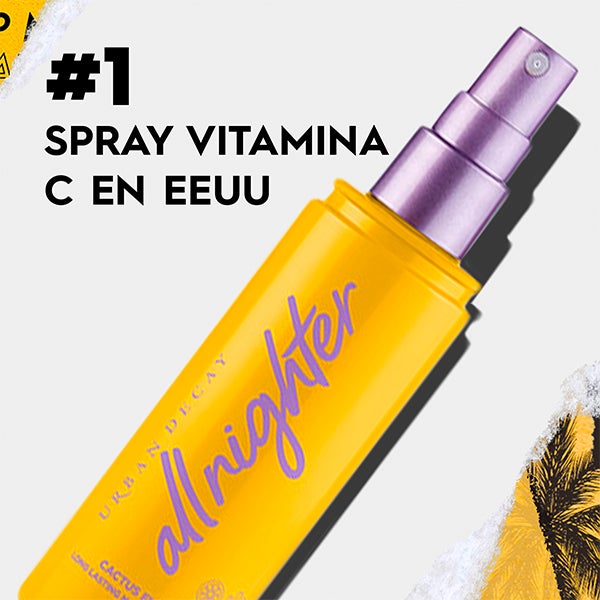 ALL NIGHTER SETTING SPRAY COM VITAMINA C, o fixador de maquiagem com fórmula vegana que proporciona uma luminosidade revitalizante.