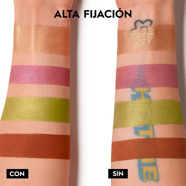 Fixa sua maquiagem por 16 horas e a torna resistente a manchas, à água e a transferências.