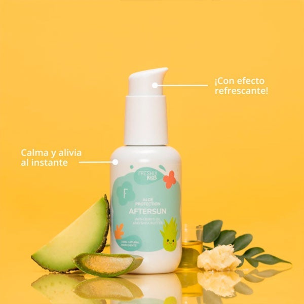 - Loção aftersun com aloe vera específica para bebês e crianças