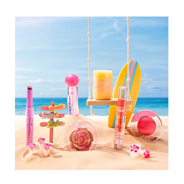 Consiga um brilho requintado com o brilho labial aloha, babes! brilho em bastão 01 Sunny Bliss, Flower Kiss de essence.