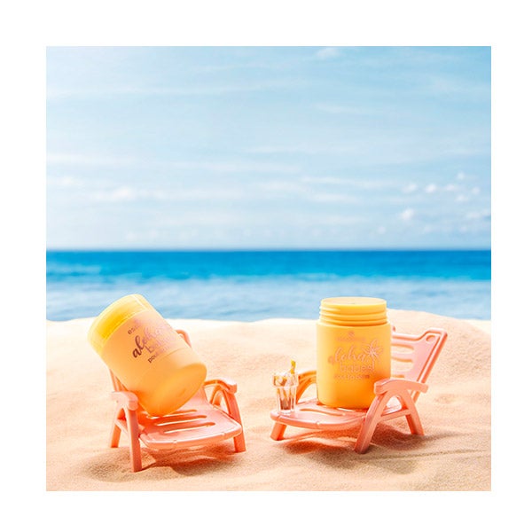 Além disso, "aloha babes!" está gravado na parte superior da abertura, o que adiciona um detalhe divertido ao design. Perfeito para usar em qualquer lugar, este bálsamo para lábios cabe em qualquer bolsa. Com um simples giro, você obtém a quantidade certa para os seus lábios, seja para o cuidado diário ou como base antes de aplicar o batom. Diga adeus à secura e olá a um pequeno pedaço de paraíso!