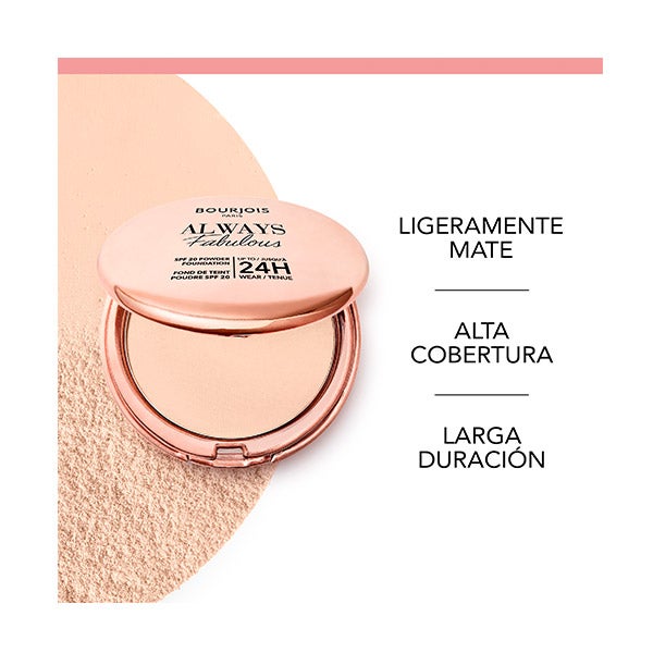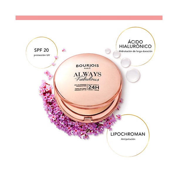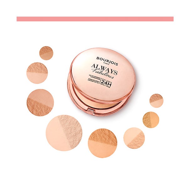 Consiga um aspecto natural e radiante sem renunciar à máxima cobertura com a nova versão dos pós Always Fabulous da Bourjois! Este novo produto estrela lhe proporcionará os benefícios e cobertura de uma base líquida com a comodidade de um pó.