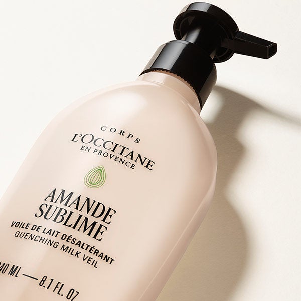 Sua textura leve é rapidamente absorvida e deixa um delicado perfume de amêndoa fresca.