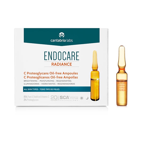 Endocare-C Proteoglicanos Oil free, as novas ampolas da Endocare-C, a linha com vitamina C da Endocare, iluminam, hidratam e regeneram a pele, pois contêm 20SCA fatores de crescimento da secreção purificada de Cryptomphalus aspersa, patenteada pela IFC, com propriedades regeneradoras e antioxidantes, 15% de vitamina C pura e estabilizada, o que permite uma ação antioxidante imediata e sustentada no tempo, uniformizando o tom e proporcionando luminosidade à pele e 2% de proteoglicanos que hidratam e suavizam as rugas de forma imediata.